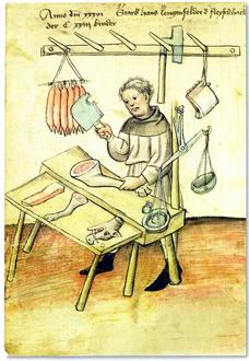 Darstellung eines Metzgers, 15. Jahrhundert, aus dem Hausbuch der Mendelschen Zwölfbrüderstiftung, Nürnberg