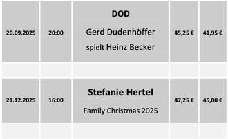| Info & Verkauf Touristinformation, Tel. 03685/774184, Internet: www.stadttheater-hildburghausen.de sowie über www.ticketshop-thueringen.de, www.eventim.de und www.reservix.de |