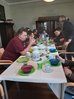 Mit einem köstlichen Irish Stew zum Mittagessen und einer grünen Götterspeise beschlossen die Englisch-Lernenden aus der Hildburghäuser Wefa ihren Ausflug auf die Grüne Insel und bedankten sich aufs Herzlichste bei den Mitarbeitern der Bibliothek für die rundum gelungene und interessante Veranstaltung. „Es hat uns allen gut gefallen“, sagt Silvio Stärker im Namen seiner Kollegen, die sich alle schon aufs nächste Projekt freuen.