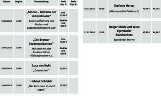 Info & Verkauf Touristinformation Tel. 03685/774184, Internet: www.stadttheater-hildburghausen.de