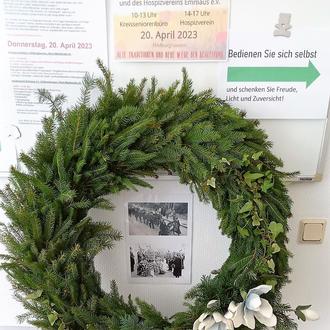 Am Nachmittag hatte der Hospizverein „Emmaus“ am Marktplatz Hildburghausen seine Türen geöffnet, und viele Besucher vom Vormittag kamen auch hier vorbei, um sich über neue Möglichkeiten der Sterbebegleitung zu informieren. Deutlich wurde hierbei auch, dass gerade die alten Traditionen wie Totenwaschung und -wache erste Schritte zur Trauerbewältigung darstellen. Aromahandmassagen wurden angeboten, oder über die häusliche und palliative Pflege informiert.