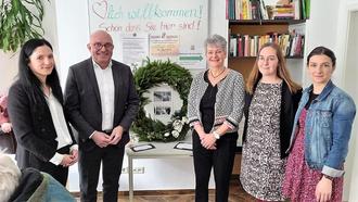 Zahlreiche Gäste aus Politik, Seniorenarbeit und Pflege sowie interessierte Bürger waren in die Räumlichkeiten des Kreisseniorenbüros auf eine Zeitreise in die Vergangenheit eingeladen. Welche Rituale gab es, wenn ein Mensch verstarb? Auf welche Weise wurde damals getrauert? Welche letzte Ehre konnte dem Toten erwiesen werden? Auf all das gab es anschauliche Antworten in Form von Schriftbannern, einem handgebundenen Trauerkranz als Symbol der Ewigkeit oder einem traditionellen Leichenschmaus in Form von Käsebrötchen.
