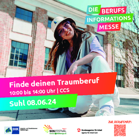 Am 8. Juni 2024 präsentieren sich knapp 130 Ausbildungsunternehmen aus der Region von 10:00 Uhr bis 14:00 Uhr auf der Berufsinformationsmesse der Industrie- und Handelskammer (IHK) Südthüringen im Congress Centrum Suhl.