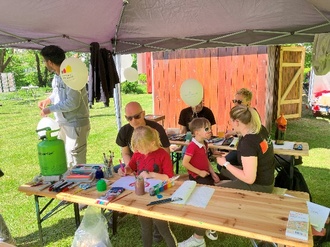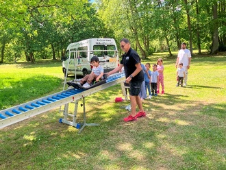 Im Zeitraum von 13.00 bis 16.30 Uhr gab es eine Fülle von Angeboten und Informationen. Mehrere Teams probierten das Discgolfspielen unter Anleitung des Kreissportbundes aus und nutzten den angelegten Parkour im Schlosspark. Die zahlreichen kleinen Kinder hatten ihre Freude beim Rutschen auf der Röllchenrutsche, die im Schatten der alten Eiche vom KSB betreut wurde. Beim Kinderschminken durch die Amateurbühne wurden die kleinen Besucher je nach Wunsch in Tiere, Helden und Gespenster verwandelt.