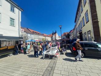 Zahlreiche Besucher kamen am verkaufsoffenen Sonntag ab 11 Uhr auf den Markplatz Hildburghausen, um bei strahlendem Sonnenschein die Vielfalt der angereisten Händler zu bestaunen. An mehr als 15 Ständen gab es Handgemachtes und Nützliches - vom Honig über Filzschuhe, Kinderkleidung bis zur nächsten Gartenpflanze.