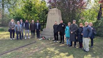 Zur Gedenkfeier vor den Ehrenanlagen für die Gefallenen der alliierten Streitkräfte, wurden Blumengebinde niedergelegt, um den Opfern des Zweiten Weltkriegs und der nationalsozialistischen Gewaltherrschaft zu gedenken. Die Veranstaltung stand ganz im Zeichen des Erinnerns an die Opfergruppen der faschistischen Verfolgungs- und Vernichtungspolitik.