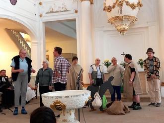 In ihrem Anspiel konzentrierten sich die Beschäftigten ganz auf die Bibelgeschichte von Abraham und seiner Frau Sara, die hochbetagt auf Gottes Befehl hin ihre Heimat, ihr Elternhaus und ihre Freunde verlassen in ein noch unbekanntes Land. Doch Gott verspricht Abraham, ihn zu einem großen Volk zu machen und Sara und ihm ein leibliches Kind zu schenken. Die beiden können es nicht glauben, sind sie doch beide 90 bzw. 100 Jahre alt. Aber die drei Boten Gottes, von denen das Paar Besuch erhält, sollten Recht behalten: Wie Gott versprochen hatte, war Isaak der erste Sohn eines riesigen Volkes, und Abraham bekam danach noch viele weitere Kinder.