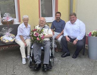 Zu ihrer Eisernen Hochzeit gratulierten Bürgermeister Patrick Hammerschmidt und Landrat Sven Gregor dem Jubelpaar Hartung herzlich und wünschten beiden weiterhin viel Gesundheit, persönliches Wohlergehen und noch viele schöne Stunden im Kreise ihrer Lieben.