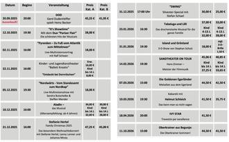 | Info & Verkauf Touristinformation, Tel. 03685/774184, Internet: www.stadttheater-hildburghausen.de sowie über www.ticketshop-thueringen.de, www.eventim.de und www.reservix.de |