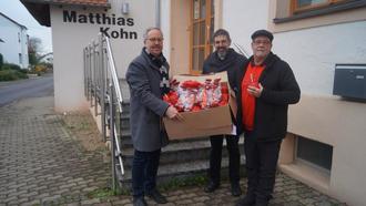 Übergabe der Nikolaus-Präsente. V.l.n.r.: Bürgermeister Hans-Joachim Neumeyer, Pfarrer Hans-Georg Müller, AHA-Vorsitzender Hans Schneider