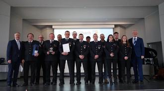 Gemeindebezirk Hülzweiler durch Ortsvorsteher Sascha Hoen: Freiwillige Feuerwehr Hülzweiler mit Löschbezirksführer Michael Schwed