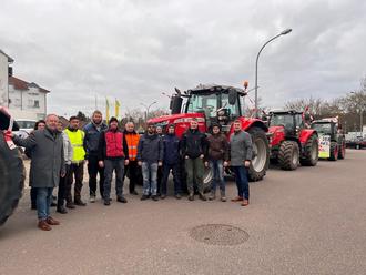 Auch die Schwalbacher Landwirte beteiligen sich an den bundesweiten Protesten gegen den Abbau von Subventionen in der Landwirtschaft. Am Montag, den 08.01.2024 startete ein Konvoi aus Traktoren nach einem Zwischenstopp und kurzer Diskussion mit Bürgermeister Hans-Joachim Neumeyer und Hauptamtsleiter Markus Weber zur „Sternenfahrt“ der Landwirte Richtung Saarbrücken: