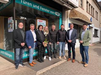 Bürgermeister Markus Weber, Ortsvorsteher Bernd Schweitzer und Wirtschaftsförderer Christopher Klein wünschten Familie Krieger viel Erfolg und gutes Gelingen in Schwalbach.