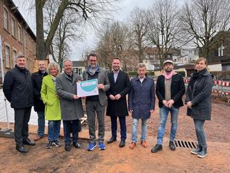 Am vergangenen Freitag besuchte Innenminister Reinhold Jost die Baustelle im Umfeld der ehemaligen Alberoschule. Hier entsteht im Rahmen der Städtebauförderung gerade ein neues Areal rund um die Kindervilla Albero. Aktuell wird der erste von zwei Bauabschnitten umgesetzt.