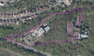 Die Rennstrecke (durchgezogene Linie) beginnt oberhalb des Klosters führt hinter den Anlagen des Seniorenheims in die dortige Grünanlage. Um die Kisten von dort wieder nach oben zum Start zu bringen, wurden für den Rückweg (gestrichelte Linie) zwei „E-Scooter angeschafft. Hier werden in Bous noch freiwillige FahrerInnen zur Unterstützung (mehr am Startschuss des Projektes s. u.) gesucht.