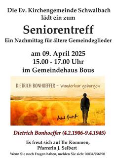 | 10.00 Uhr | Gemeindezentrum Schwalbach |