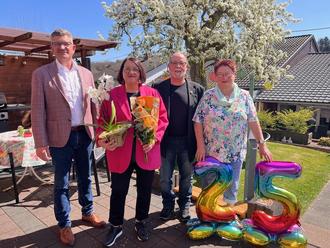Bürgermeister Markus Weber, Ortsvorsteherin Christel Albert sowie Hans Schneider von der AHA Schwalbach überbrachten ihre Glückwünsche zum 25-jährigen Jubiläum und wünschten weiterhin viel Erfolg.