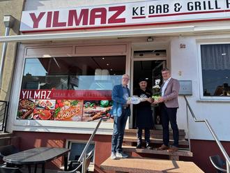 Bürgermeister Markus Weber und Ortsvorsteher Sascha Hoen gratulierten Herrn Yilmaz herzlich zur Neueröffnung und wünschten viel Erfolg für die Zukunft.