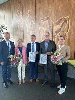 Alle zwei Jahre werden Kommunalpolitiker mit der Freiherr-vom-Stein-Medaille ausgezeichnet. Bürgermeister Hans-Joachim Neumeyer gratulierte nach der Auszeichnung durch Innenminister Reinhold Jost und Landrat Patrik Lauer beiden Geehrten herzlich und bedankte sich für ihr großartiges Engagement der letzten Jahre.