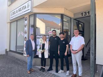 Dieser Tage besuchte Bürgermeister Markus Weber zusammen mit Ortsvorsteher Bernd Schweitzer den neuen Friseursalon von Silvia Krasiqi und Delil Erinc in der Schwalbacher Hauptstraße.
