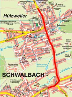Der betroffene Abschnitt erstreckt sich vom Kreisverkehrsplatz am Gewerbegebiet Hild in Hülzweiler in Richtung Schwalbach über die "Saarwellinger Straße", "Hülzweiler Straße" bis zur "Hauptstraße" in Schwalbach (kurz vor der Einmündung "Bierstraße").