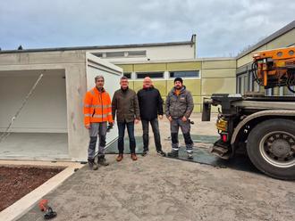Aufgrund der Masse an Lagermaterial im Haus für Kultur und Sport wurde dort der Bau zweier Gerätegaragen notwendig. Bereits im Dezember 2025 wurden die beiden Fertiggaragen durch die Fa. Grötz angeliefert und am Hafkus installiert.