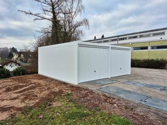 Die fertigen Garagen neben dem Haus für Kultur und Sport