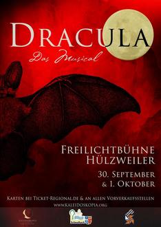 Mit DRACULA – Das Musical feiert eine dunkelbunte Inszenierung Premiere, die einige Überraschungen bereithält. Schauplatz ist die mystisch in den Wald eingebettete Freilichtbühne Hülzweiler, eine Art „Ruine“, die mit einem eigenen See und zu dieser Jahreszeit lebendigen Fledermäusen als tierische Nebendarsteller aufwartet. Eine einzigartige Kulisse, die passender nicht sein könnte.