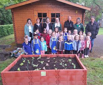 Zwei Servicepartnerinnen der Stiftung und unser Pate Felix Berghoff (Edeka Berghoff Elm) befüllten es mit frischer Erde und brachten verschiedene Gemüsesetzlinge und Samen mit. Die Kinder hatten viel Freude daran, die Gemüsesetzlinge zu pflanzen und die Karotten- und Radieschensamen zu säen. Mit unseren gesponserten Gießkannen wurde alles gut bewässert. Das war richtig toll.