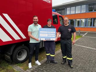 Wehrführer Torsten Kaspar und Gemeindejugendbeauftragte Michelle Eichhorn nahmen die Spende entgegen und bedanken sich für das Engagement.