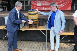 Nach erfolgreich abgeschlossener Übung eröffnete Bürgermeister Hans-Joachim Neumeyer zusammen mit Ortsvorsteher Bernd Schweitzer das Fest mit dem offiziellen Fassanstich.