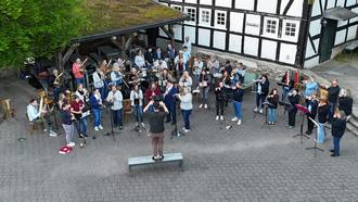 Danach ging es mit dem Biggolino zum Biggesee, wo wir bei herrlichem Wetter die Natur und die frische Luft in vollen Zügen auskosten konnten. Zurück auf Burg Bilstein begann der musikalische Teil des Treffens: Die Elmer Musikvereine traten nacheinander auf, und es war eine Freude, die vielfältigen Repertoires kennenzulernen. Das Highlight war das gemeinsame Musizieren am Ende, bei dem alle Beteiligten mit viel Freude und Begeisterung zusammenspielten. Der Austausch über Erlebnisse und Erinnerungen rundete den Tag ab und schuf eine herzliche Atmosphäre des Miteinanders.
