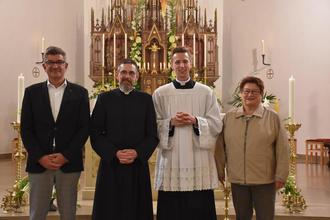 Seine Primiz feierte er an Pfingstsonntag in St. Josef in Elm, wo auch Ortsvorsteherin Christel Albert und Bürgermeister Markus Weber ihm gratulieren konnten sowie an Pfingstmontag in Maria Himmelfahrt in Sprengen.