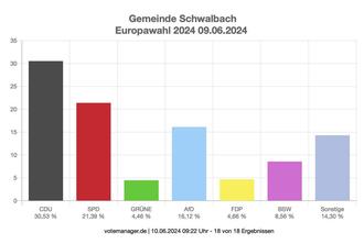 Ergebnisse der Europawahl, Kreistagswahl und Gemeinderatswahl 2024 in der Gemeinde Schwalbach
