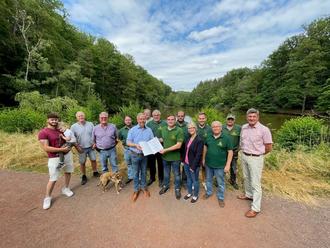 Der Angelsportverein Hülzweiler übernimmt zukünftig die Patenschaft für den Waldsee in Hülzweiler. Bürgermeister Neumeyer überreichte vergangene Woche feierlich die Urkunde für die Patenschaft direkt am Waldsee.