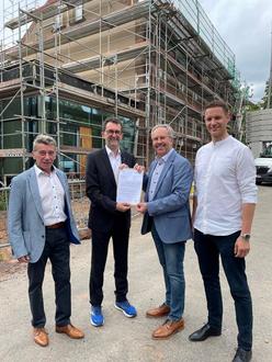 „Nicht nur Corona, sondern auch der Ukraine Krieg haben uns mehrfach Striche durch die Rechnung gemacht. Preise haben sich drastisch erhöht, Zeiten konnten nicht eingehalten werden. Aber eine Investition in unsere Kinder ist es wert, hartnäckig durchzuhalten und deshalb bin ich sehr froh, diese Bedarfszuweisung nun entgegen nehmen zu können und zu bestätigen, dass wir (bei planmäßigem Baufortschritt) im Oktober eröffnen können“, sagt Bürgermeister Hans-Joachim Neumeyer. Aufgrund der erhöhten Baukosten (Material etc.) hatte sich das Gesamtvolumen der Maßnahme von geplanten knapp 3 Mio. Euro auf ca. 4 Mio. erhöht.