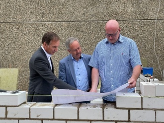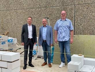 Bürgermeister Hans-Joachim Neumeyer überzeugte sich letzte Woche zusammen mit dem technischen Geschäftsführer Knut Braß und Betriebsleiter Markus Comteße von den Fortschritten beim Bau und sah sich erste Ergebnisse an.