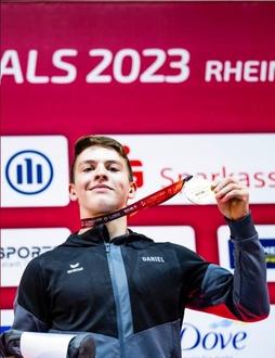 Der 18-jährige Daniel Mousichidis vom TV Schwalbach, der erst letzte Woche bei den deutschen Jugendmeisterschaften aufgetrumpft hatte (insgesamt sechs Medaillen), wurde nun in zwei Disziplinen deutscher Meister bei den Herren. Er gewann sowohl am Boden als auch am Pauschenpferd die Goldmedaille.