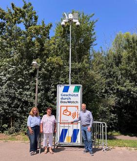 Der Beigeordnete Peter Bonner, Ortsvorsteherin Christel Albert und die Schulleiterin der Bachtalschule Daniela Junker konnten sich am 03.07.2025 gemeinsam ein Bild von der installierten Videotechnik machen.