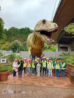 Am vergangenen Donnerstag war es endlich soweit. Die Einschulkinder der Kita trafen sich früh am Morgen zum gemeinsamen Frühstück in der Kita. Nachdem wir uns für den Ausflug gestärkt hatten, kam uns der große Reisebus abholen und wir fuhren gemeinsam nach Kaiserslautern in den Dinopark. Dort angekommen besuchten wir zuerst die Legoausstellung und erkundeten danach den Ausgrabungspfad der Dinos. Wir stärkten uns mit einem kleinen zweiten Frühstück und besuchten den großen Barfußpfad, den Kräutergarten und die Dinos des Parks. Im Anschluss erkundeten wir den ersten großen Spielplatz und tobten uns aus. Zum Mittagessen gab es Dinochicken und Pommes für jedes Kind. Nach der Stärkung spielten wir auf dem großen Wasserspielplatz und hatten dort eine Menge Spaß. Am Nachmittag gab es für Alle noch ein Eis und wir gingen auf den zweiten großen Spielplatz. Das Highlight dort war der große Rutschenturm mit der riesigen Röhrenrutsche! Wir hatten viel Spaß und tobten was das Zeug hielt. Gegen 16:00 Uhr machten wir uns auf den Heimweg und wurden nach einer lustigen Rückfahrt von den Eltern der Einschulkinder an der Kita empfangen. Wir hatten viel zu berichten und waren Alle müde von diesem ereignisreichen Abschlusstag. Wir bedanken uns bei unserem Förderverein "kleine Racker", die einen großen Teil der Ausflugskosten übernommen haben.