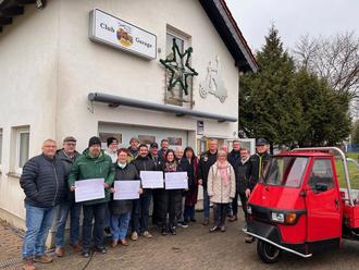 Am Montag, dem 12.01.2026 wurden dann an der Clubgarage symbolisch zwei Schecks in Höhe von jeweils 400 € an Kathleen Seeger (Kita Maria Himmelfahrt Sprengen) und Alexander Brandt (Kita St. Josef Derlen) sowie zwei Schecks in Höhe von jeweils 200 Euro an die Jugendfeuerwehr Elm und den Förderverein Bachtalschule (in Vertretung von Christel Albert) im Beisein von Bürgermeister Markus Weber und Ortsvorsteherin Christel Albert sowie dem Verkaufsteam und den Vorstandsmitgliedern des VC Elm übereicht.