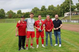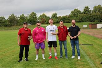 Die Siegerehrung übernahm der amtsführende Erste Beigeordnete David Maaß gemeinsam mit Hans Schneider, TPL-Fachreinigung Schwalbach, direkt im Anschluss an das letzte Spiel.