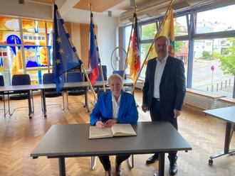 Gerne trug sich die Landtagspräsidentin ins Ehrenbuch der Gemeinde Schwalbach ein.