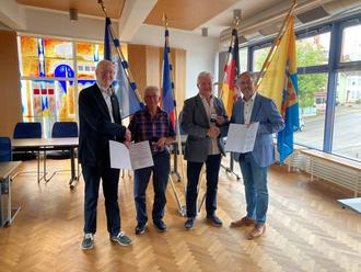 v.r.n.l.: Bürgermeister Hans-Joachim Neumeyer, Stefan Rech, Hans Wagner und Sascha Hoen (Ortsvorsteher Hülzweiler)