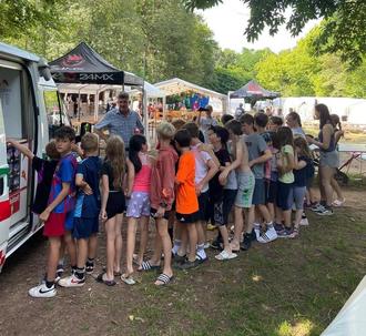 Auch in diesem Jahr überraschte Bürgermeister Markus Weber alle Kinder der Zeltlager in der Gemeinde Schwalbach mit einem Besuch des Eismanns. In der ersten Ferienwoche besuchte er zusammen mit Eismann „Armando“ die Zeltlager des TV Hülzweiler, des TV Griesborn, des KV die Bollen und des TUS Elm Sprengen. In der zweiten Woche folgte dann noch das Lager des TV Schwalbach sowie des SAV Schwalbach. Alle Kinder freuten sich riesig über die kleine Erfrischung und Bürgermeister Markus Weber dankte Armando herzlich für seinen Besuch.
