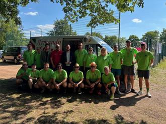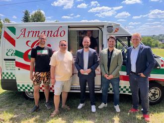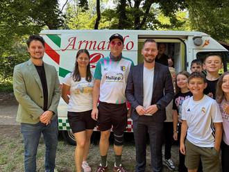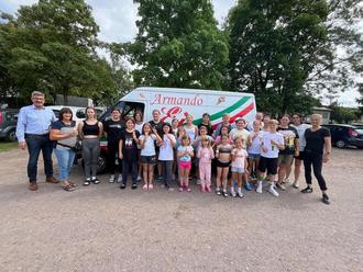 Auch in diesem Jahr überraschte die Gemeinde Schwalbach die Kinder verschiedener Zeltlager mit einem Besuch des Eismannes „Armando“. In der ersten Ferienwoche besuchte der amtsführende Erste Beigeordnete David Maaß zusammen mit Hauptamtsleiter Christopher Klein die Zeltlager des TV Griesborn, des KV die Bollen und des TuS Elm Sprengen. In der zweiten Woche folgte dann das Lager des TV Schwalbach. Zum Abschluss besuchte Bürgermeister Markus Weber das Zeltlager des SAV Schwalbach-Griesborn. Alle Kinder freuten sich riesig über die kleine Erfrischung und die Gemeinde Schwalbach dankt Armando herzlich für seine Besuche.