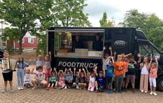 Auch das Team von Saaretti kam mit seinem Foodtruck vorbei und sorgte mit Currywurst und Pommes für einen Kindergaumenschmaus. Die Band „PASSIONE“ sorgte dabei für Partystimmung.