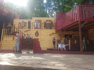 Neben den ganzen Gestaltungsarbeiten, wurde auch viel im Wald gespielt. Die herrliche Kulisse der Volksbühne Hülzweiler lud die Kinder natürlich dazu ein, Cowboy zu spielen.