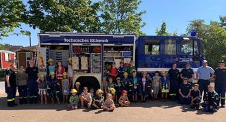 Zum Abschluss besuchte uns die Jugend des THW Saarwellingen mit ihren großen Autos. An verschiedenen Stationen lernten die Kinder die Aufgaben und Gerätschaften des THW´s kennen.