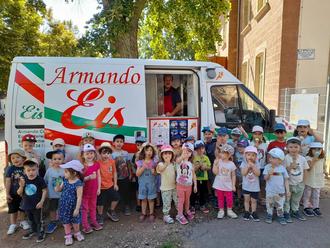 Zuerst gab es eine kleine Kinovorstellung und im Anschluss hat uns auch dieses Jahr wieder der Eismann Armando besucht und uns den Start in die Sommerferien versüßt. Sogar das Wetter hat an diesem Tag mitgespielt und so hat das Eis noch viel besser geschmeckt.